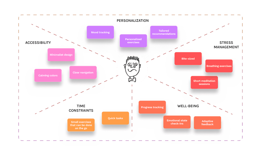 After outlining the idea, I recognized that the real challenge would be creating a personalized experience—one that adapts to the user’s specific emotional state and daily stress triggers.