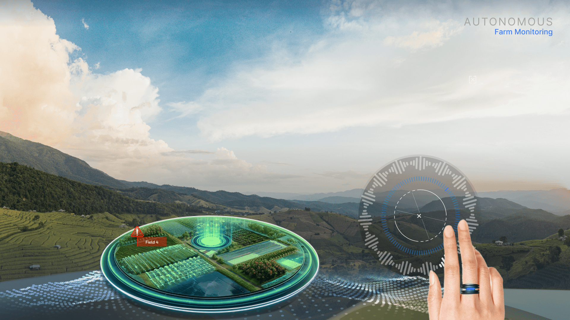 Neuro-Sensory Ring + AR Lens: Instant farming alerts. Smart key. AR data, always in sight.